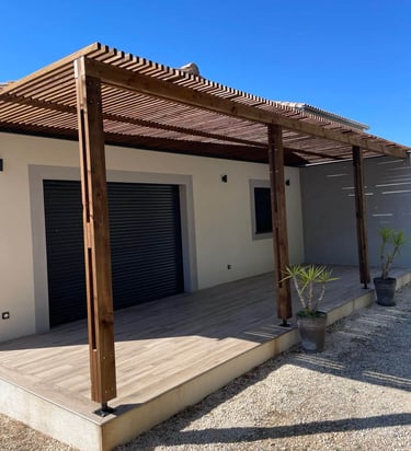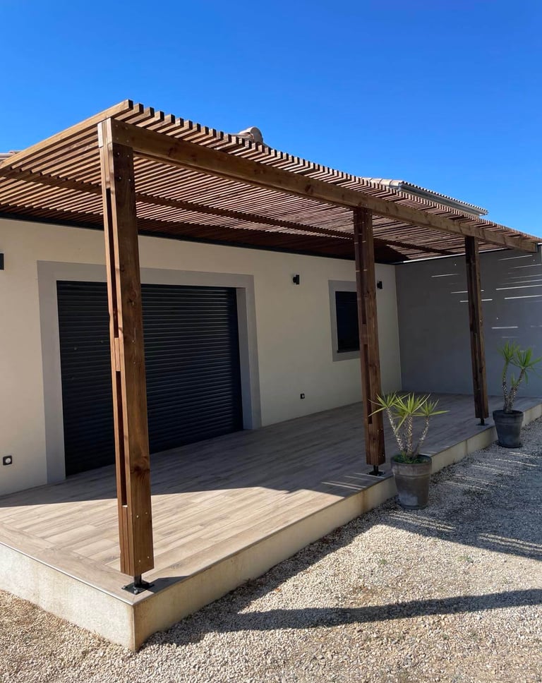 Je conçois et réalise des terrasses, plages de piscine et structures bois sur mesure : abris voiture, pergolas, cuisines d’été, locaux techniques et aménagements spécifiques.